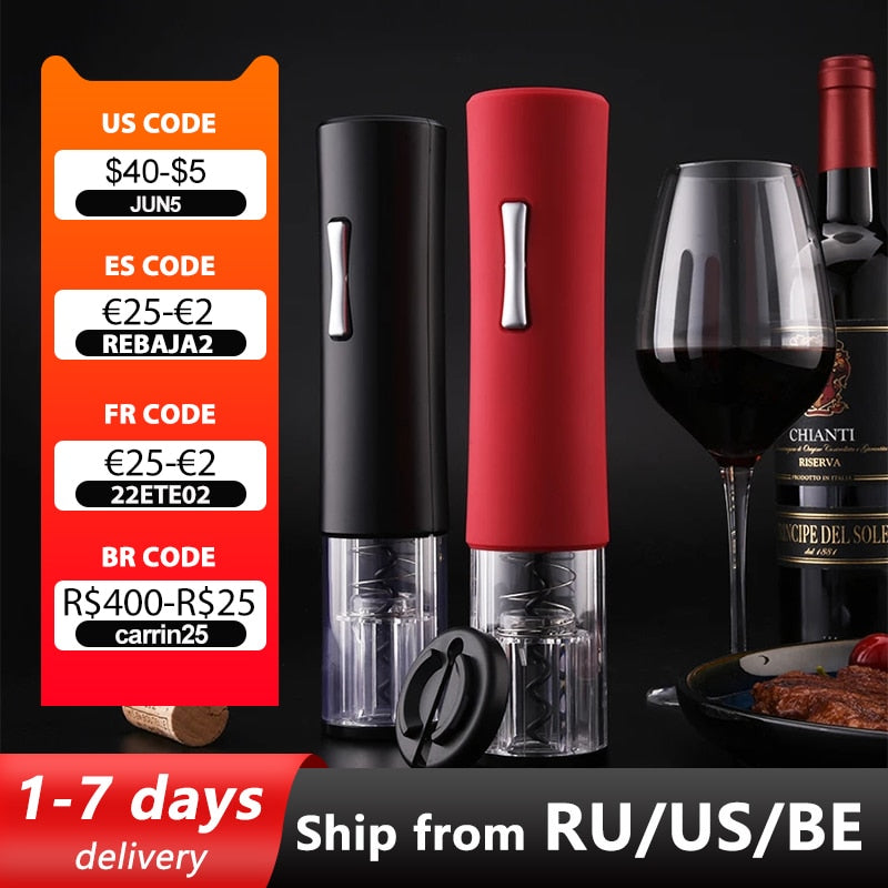 Quickly open the cork: the electric bottle opener is powered by 4 x AA batteries. High-density gears and a powerful torque power system design that can quickly open bottles in 5-7 seconds. Batteries not included