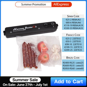 【10pcs Seal Bags & Multi Seal】-- We supply 10pcs BPA-free seal bags as free gift. This sous vide vacuum sealer supports sealing bags in seconds (bags can't be overlapped). High Efficiency and save your time!