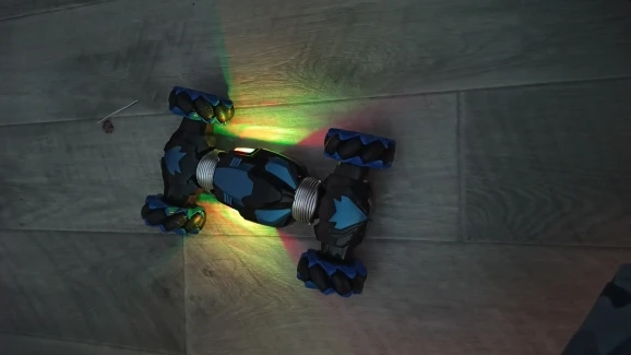 【Sensitive and Easy to Control】: This 4WD remote control car uses 4 mecanum tires, which allows it to move in all directions, it can also do sideway drifting or 360° spinning. It can go through any obstacle. The design of lighting and side drifting makes it look really cool at night. 2 rechargeable batteries extended running time.